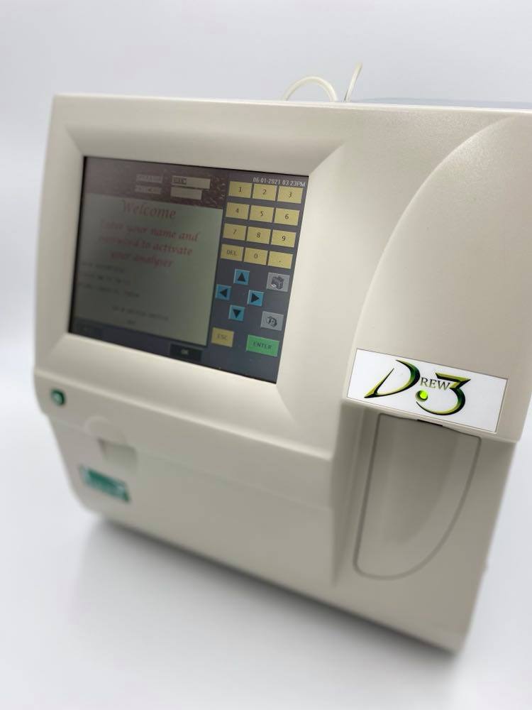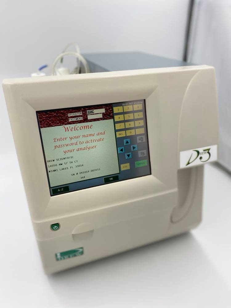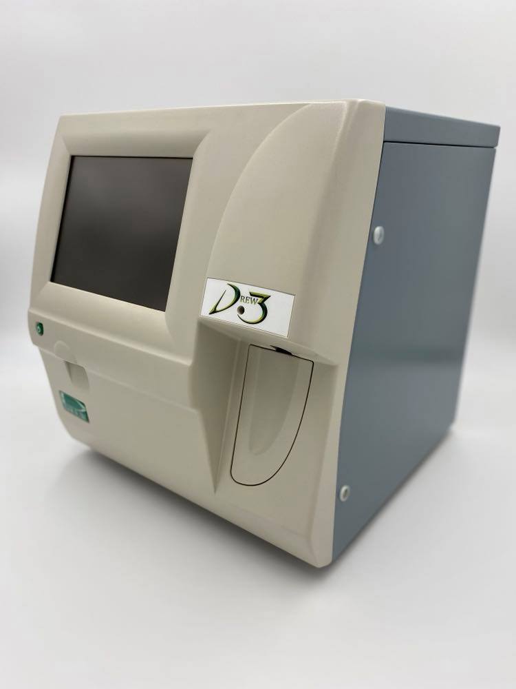 With over 15 years of servicing the human hematology market, the dependable Drew Scientific D3 3-part differential automatic system is a powerhouse and is dependable, sturdy, robust, and reliable. The D3 System has an easy-to-use touchscreen interface with a convenient and easy-to-load onboard quality reagent pack. With a very small footprint, the 3-part complete blood count analyzer is perfect for doctors’ offices, as well as for urgent care and oncology clinics among others.
